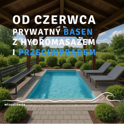 Jeszcze więcej relaksu Przy Termach – od czerwca 2026 zapraszamy do nowego, zewnętrznego basenu z hydromasażem i przeciwprądem.